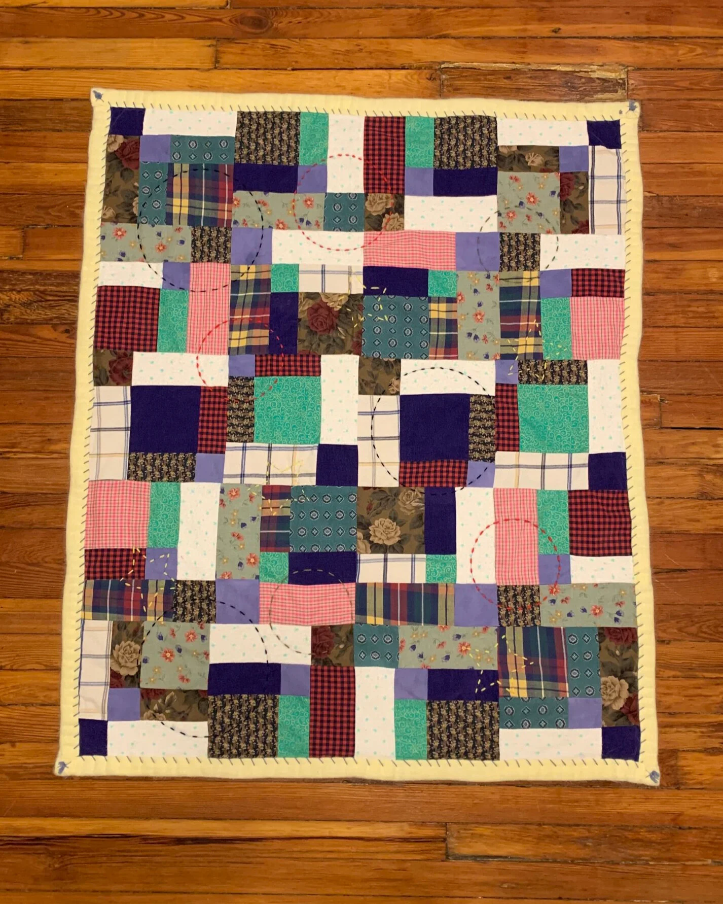 My quilt-making practice began in 2010. I primarily use reclaimed fabric and materials. This is an intentional nod to the history of American quilt-making and an ongoing commitment to sustainability and environmental conscientiousness.