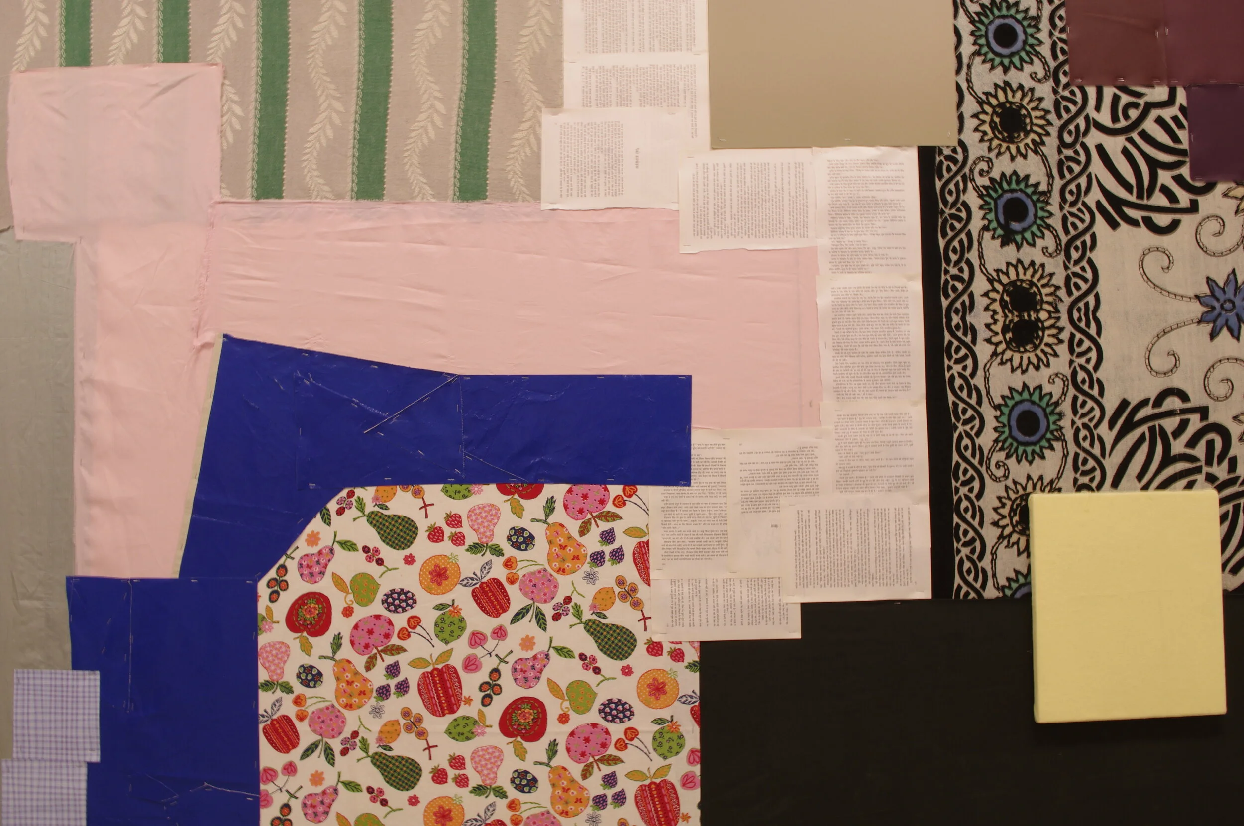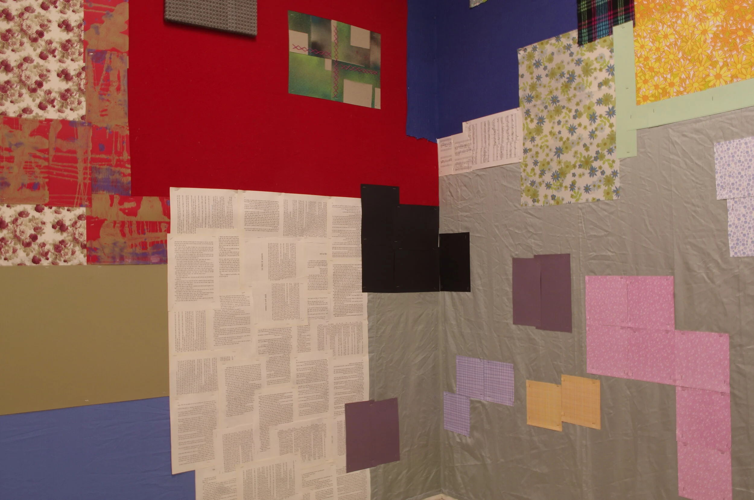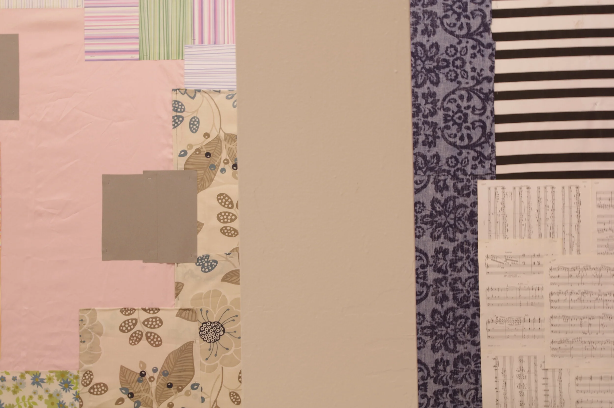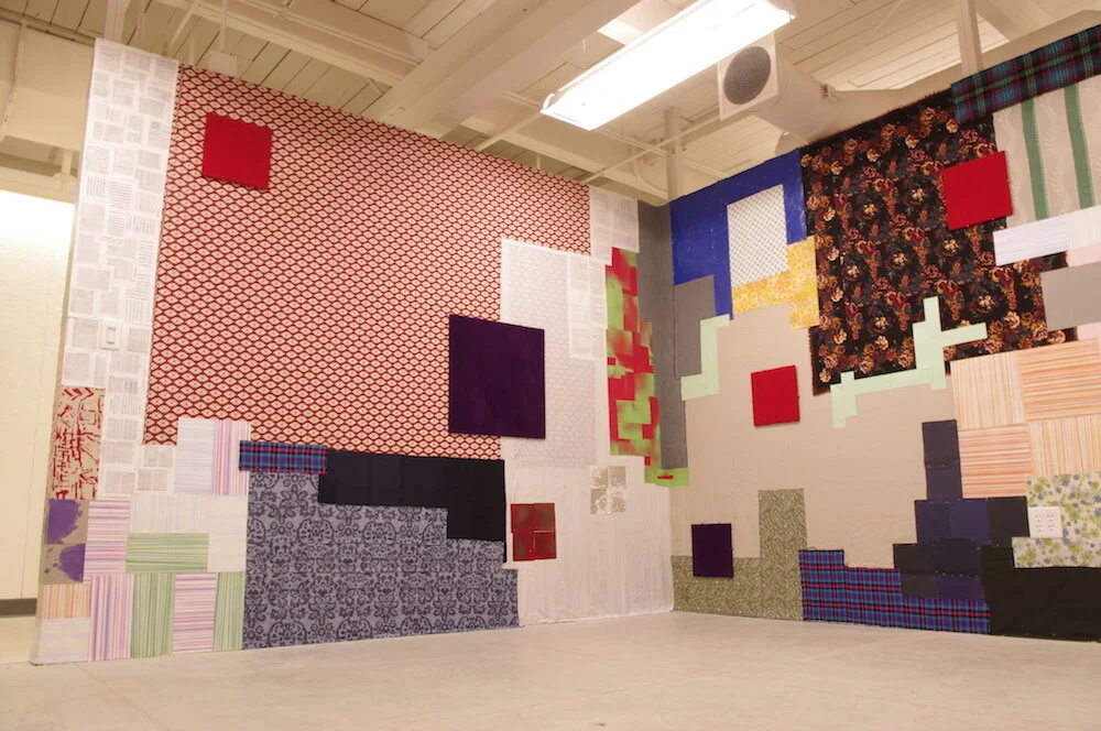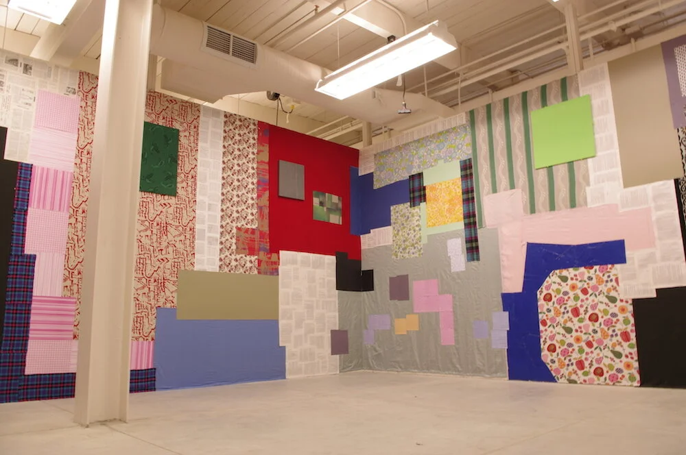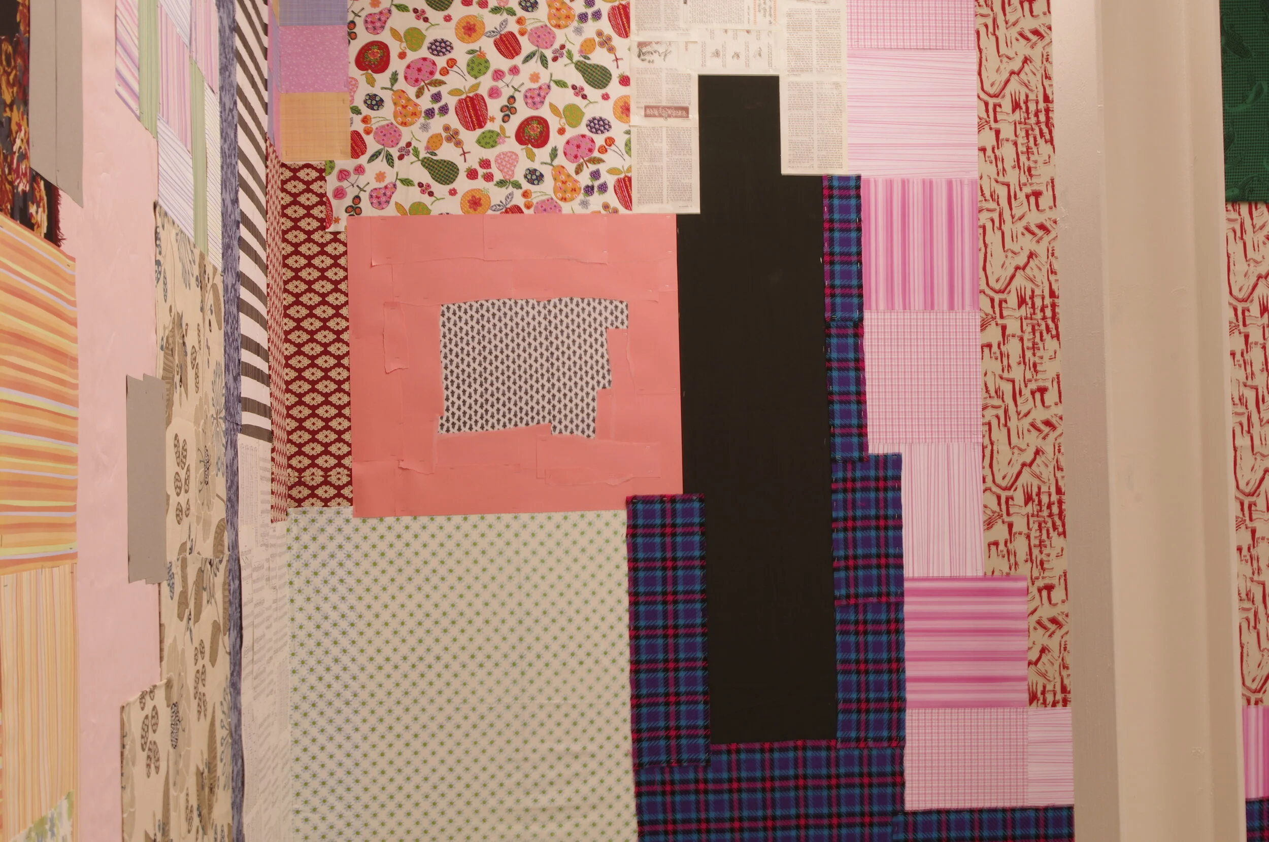 QUILTSTALLATION | In 2012, for the first time ever, I was able to explode my fabric collection onto the walls of a project space. This installation environment was made using reclaimed fabric, paper, sheet music, and painted cardboard. It served as the site of my first group critique, a dance video backdrop, and a space of solitude.